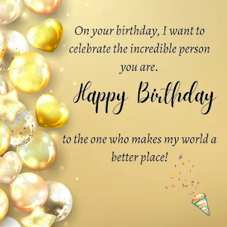 On your birthday, I want to celebrate the incredible person you are. Happy birthday to the one who makes my world a better place!